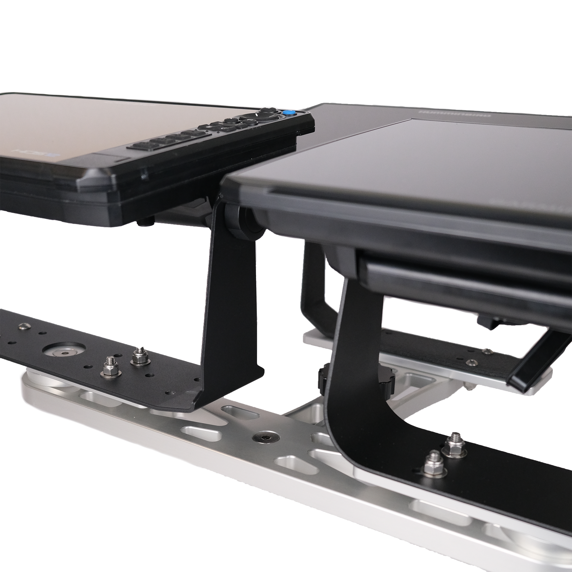 Finally, a complete triple graph mount with the option to upgrade your Universal stack to meet the demand of todays electronics setups. CNC Machined from Billet Aluminum the GeigerTec Triple Mount allows you to run three (3) graphs up to 12" from Humminbird, Garmin, Lowrance and other Electronics Manufacturers all while bringing them up off the deck of your boat.
